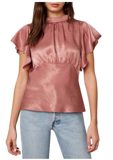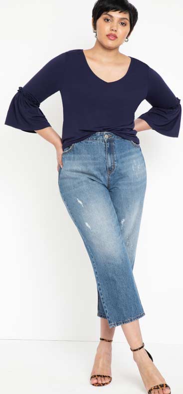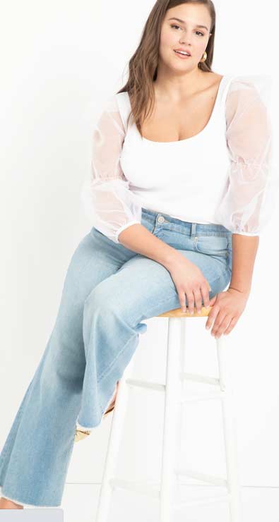 Maybe you have lost some tone in your upper arms, or you have heavier upper arms and you want to find styles that flatter you. You can apply these strategies to feel comfortable and stylish. The wider sleeves that have been in fashion for the past year or so are great for hiding a heavier arm. The best styles will be ones made of a thinner or flowy material. Bulky fabric can add more bulk…and we don’t want that. You can also utilize a sheer sleeve, such as in the white top above, or an angled diagonal sleeve, which will be very slimming and flattering, such as the flutter sleeve in the salmon top shown above.