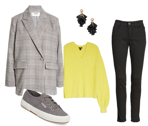 Here are some guidelines to help you. Illuminating is a very vibrant yellow so it is best for those who have either a cool and bright coloring or a warm and bright coloring. If you have a more muted or soft look, it will be best if you wear illuminating yellow as an accent accessory, or in a pattern such as a striped shirt with a soft white or ivory paired with it, or in a soft floral pattern for example. See the idea below.